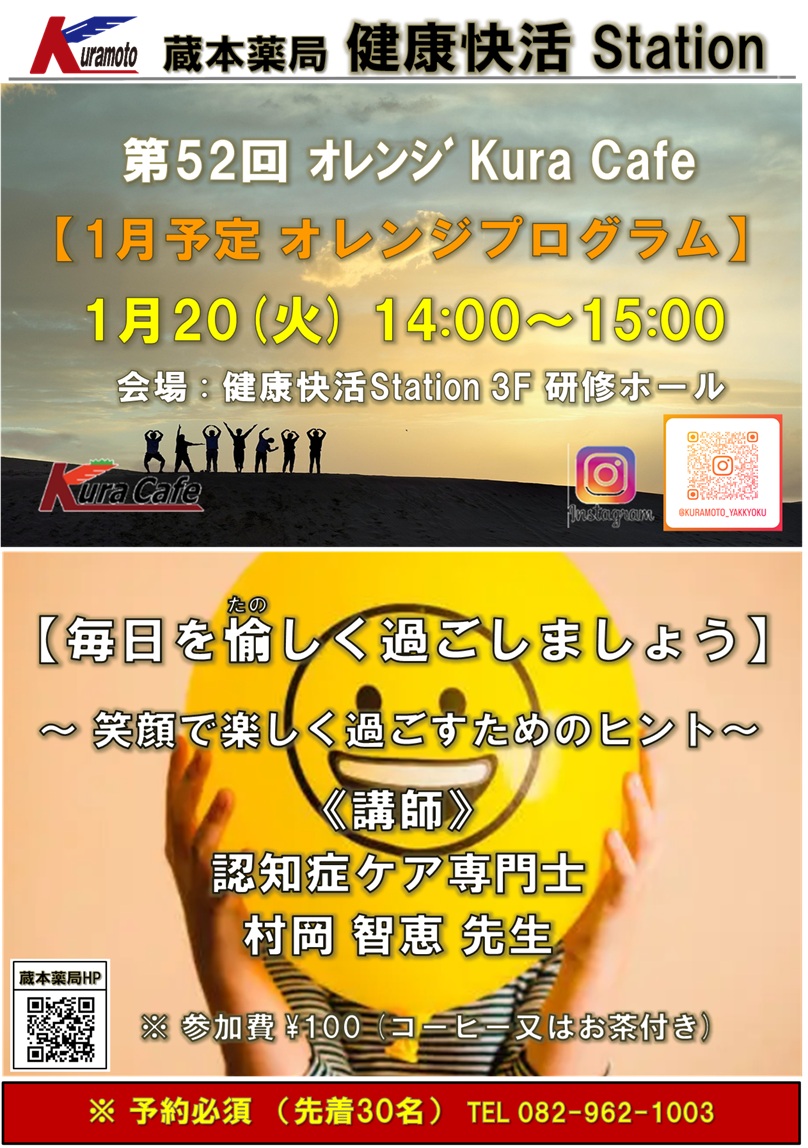 第81回 地域健康教室 認知症カフェ ~ 第52回オレンジ Kura Cafe ~【毎日を愉しく過ごしましょう】